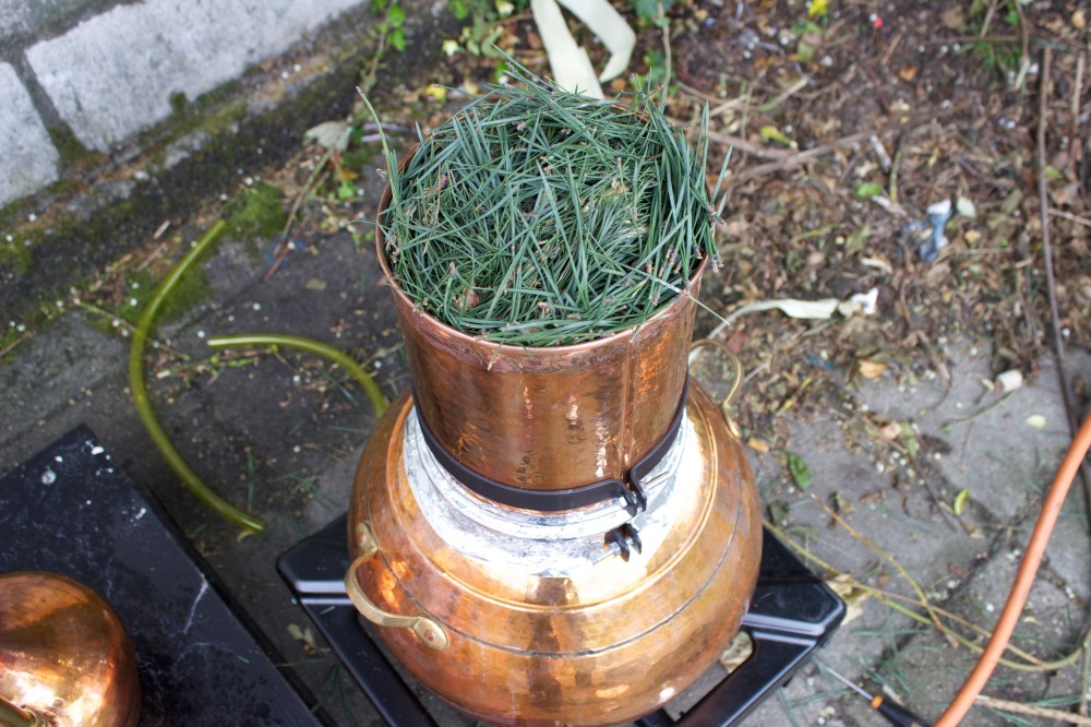 Within the alembic’s gentle embrace, the alchemical process unveiled its magic. Steam gently teased the needles, carrying their precious essence through a transformative journey. Droplet by droplet, nature’s medicine materialized before my very eyes, as the golden Oil of pine essential oil descended into the waiting vessel.