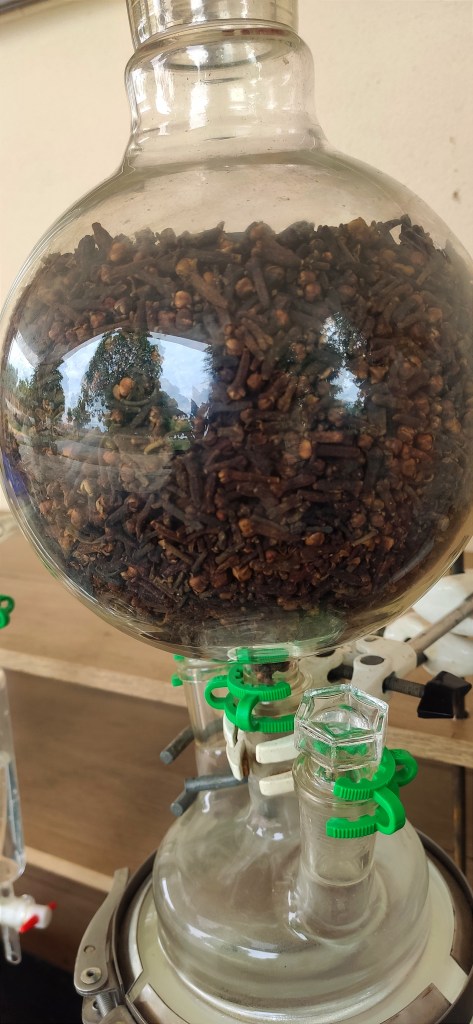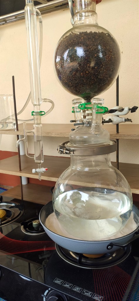 It was a sight to behold, witnessing the oil’s graceful descent to the bottom, because clove oil is heavier than water. As the oil settled at the bottom of the distillate, it seemed to speak a language of its own—whispering wisdom and secrets of healing. In that moment, I felt like an observer, beholding a divine manifestation of nature’s Sulphur, where each droplet carried the essence of transformation.